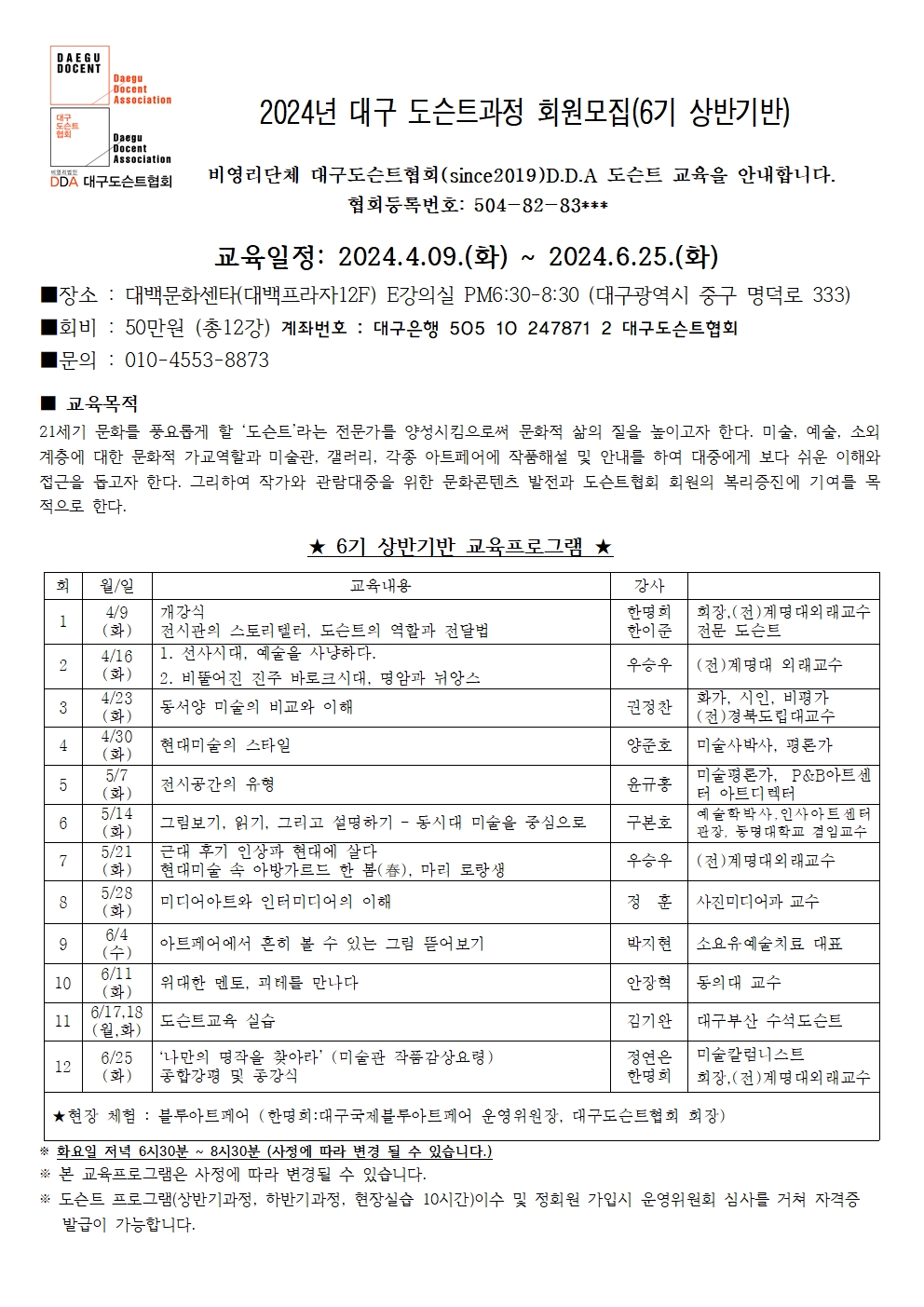 비용 : 50만원 (대구은행 505-10-247871-2 대구도슨트협회)