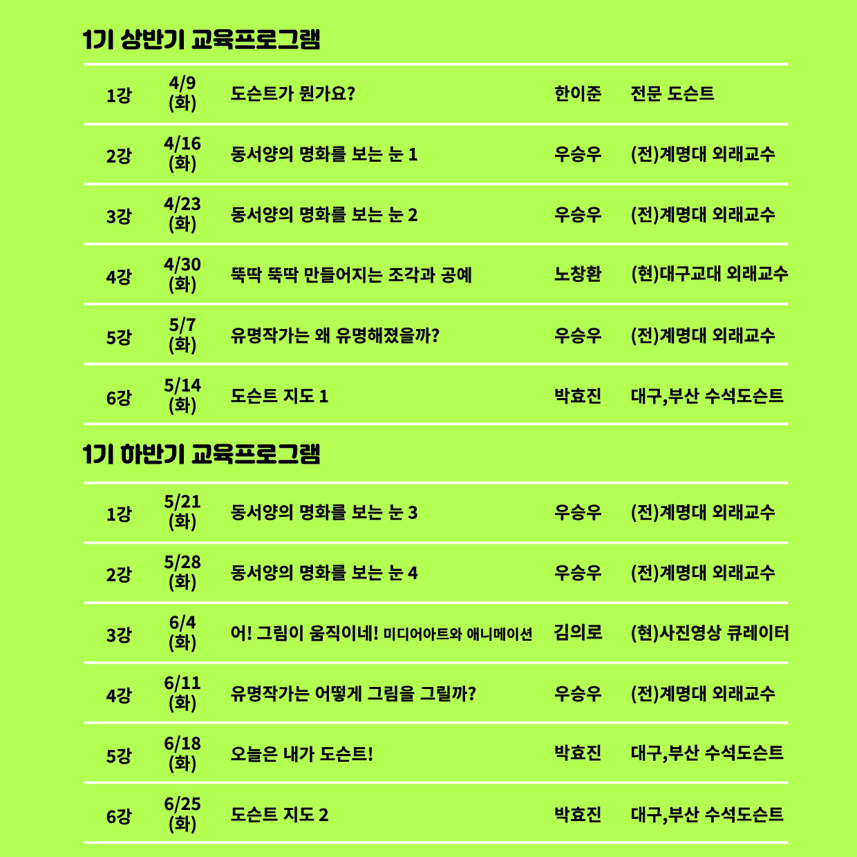 비용 : 상반기 6강/ 하반기 6강(각 30만원씩)